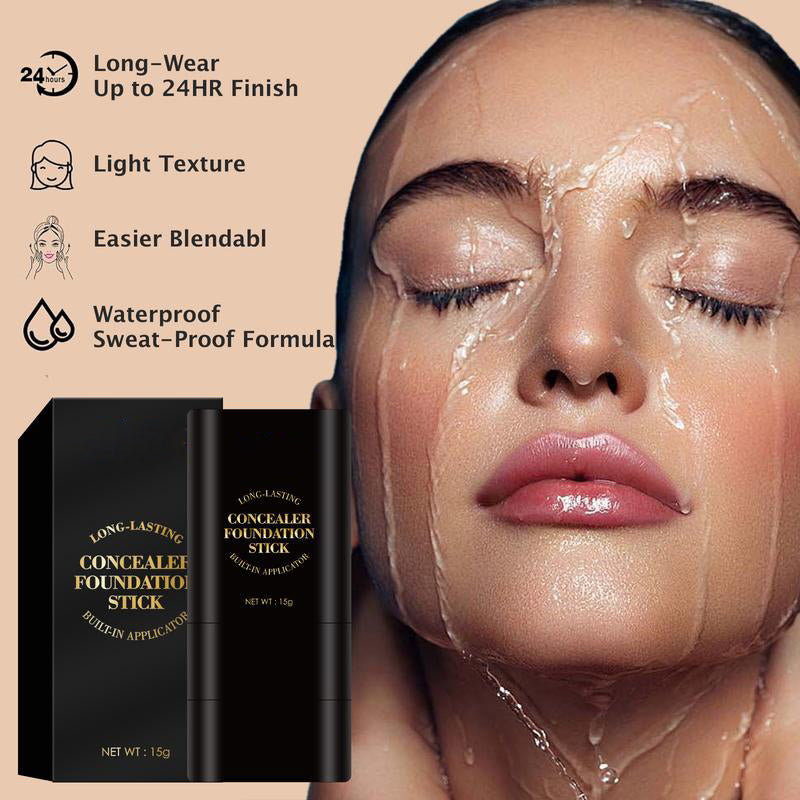 🔥 2-in-1 Foundation & Concealer Stick with Moisturizing, Lightweight & Built-In Brush